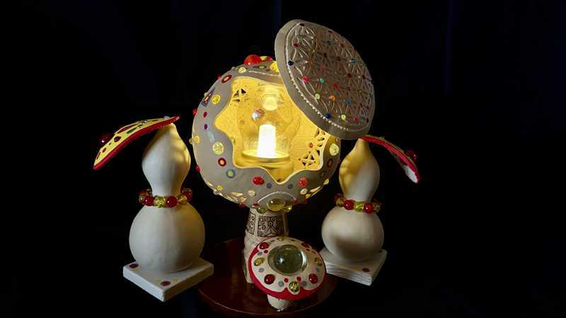 個性的な形状を持つ複数のひょうたんを組み合わせて構成された、唯一無二のアートピースとなっております。