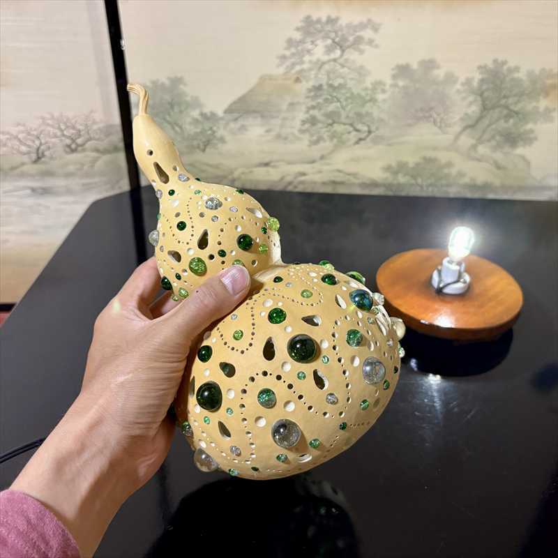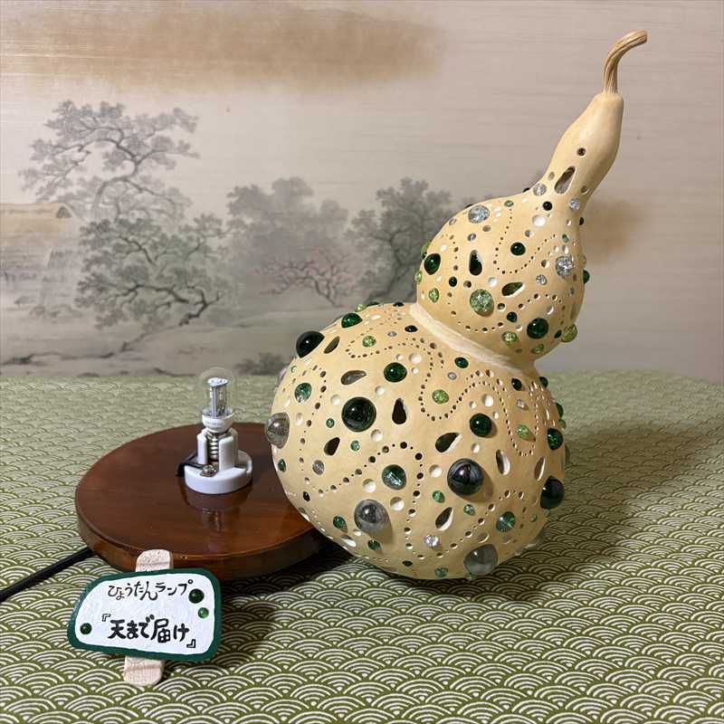 自家栽培・無農薬のひょうたんを用いた、世界にひとつだけのオリジナルランプです。