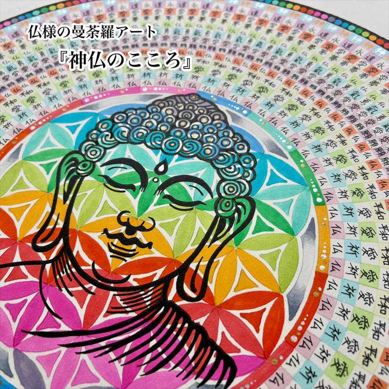 この作品は、AIによって生成された仏様の画像を参考にし、kitatikらしい独自のスタイルで描き上げた曼荼羅アートです。