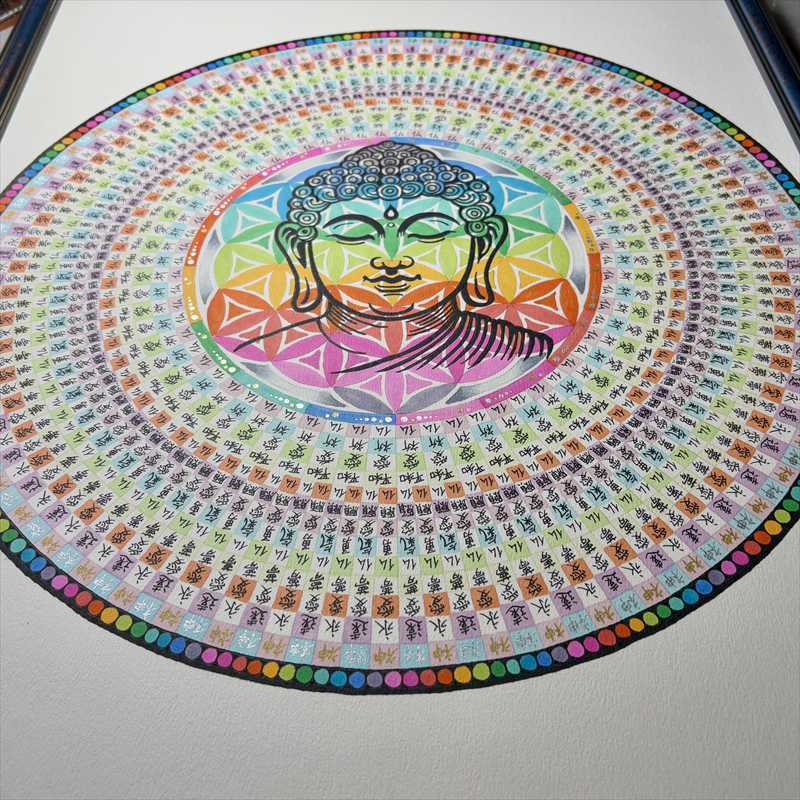 創作の過程では、神仏の心を思い描きながら、降りてきた文字を一文字ずつ丁寧に書き記しました。その結果、視覚的な美しさと心の浄化をもたらす、特別な作品が完成しました。