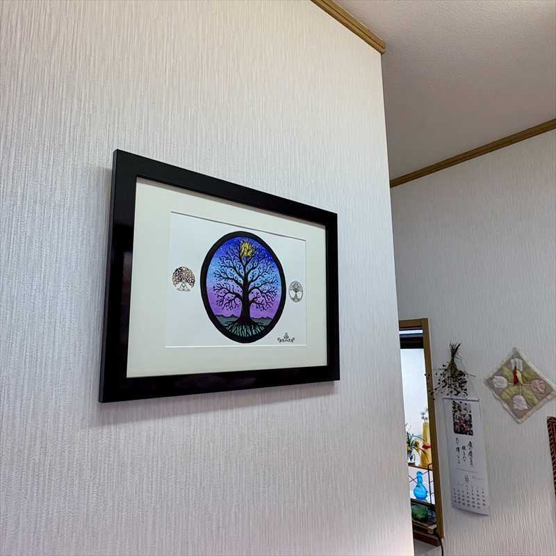 また、左右に配置した生命樹のメタルステッカーが、作品に独自のアクセントを加えています。