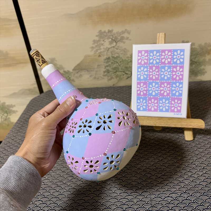 アクリルガッシュで彩色したひょうたんには、