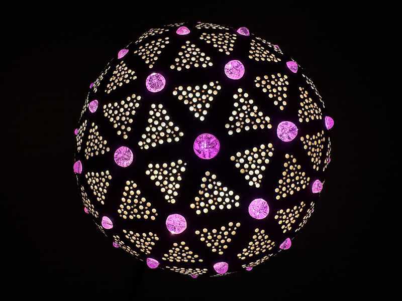 幾何学の静かな秩序と、光を受けてきらめくガラスの輝きが調和し、神秘的でどこか妖艶な光の表情を生み出します。