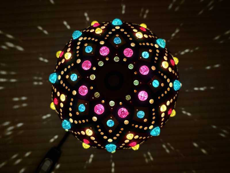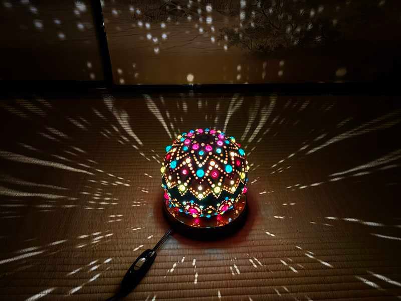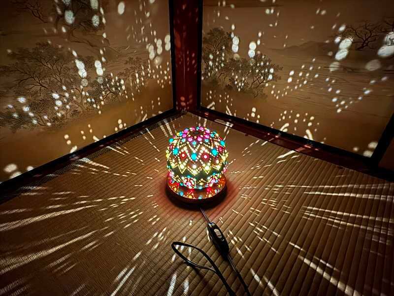 光を灯すとビーズが柔らかく輝き、まるで小さな鞠が息づくような幻想的な光景が広がります。