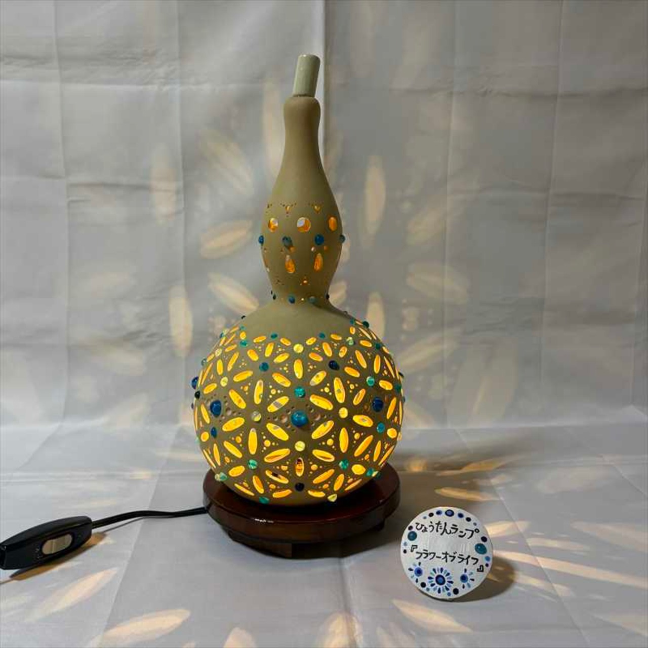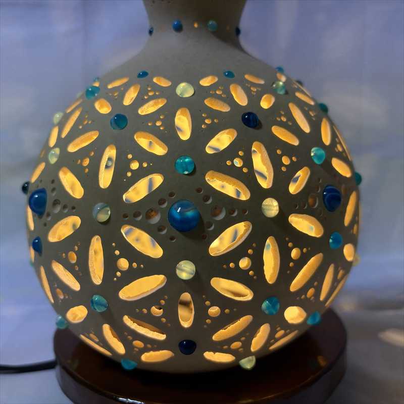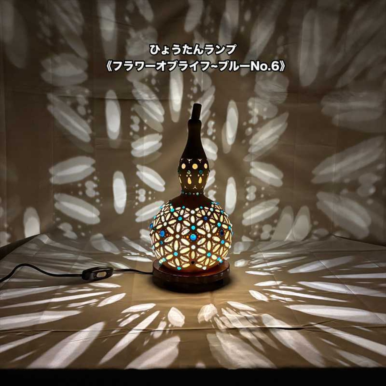 商品名:瓢箪ランプ「フラワーオブライフ 〜ブルー No.6」