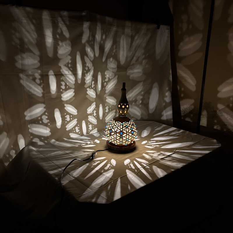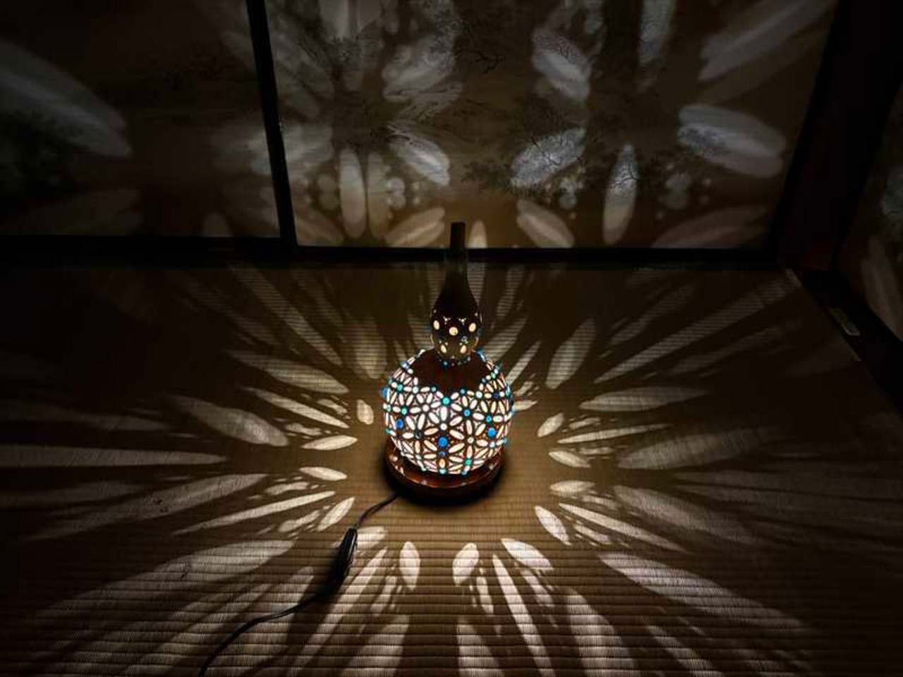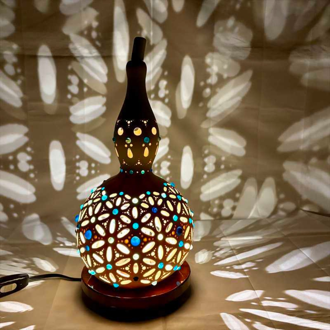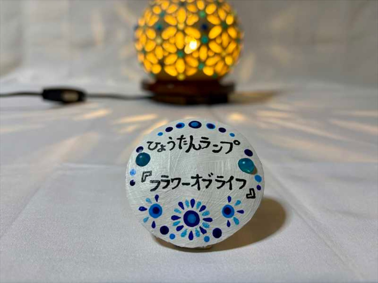 商品名:瓢箪ランプ「フラワーオブライフ 〜ブルー No.6」