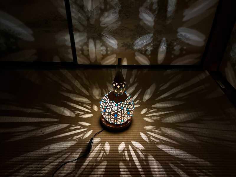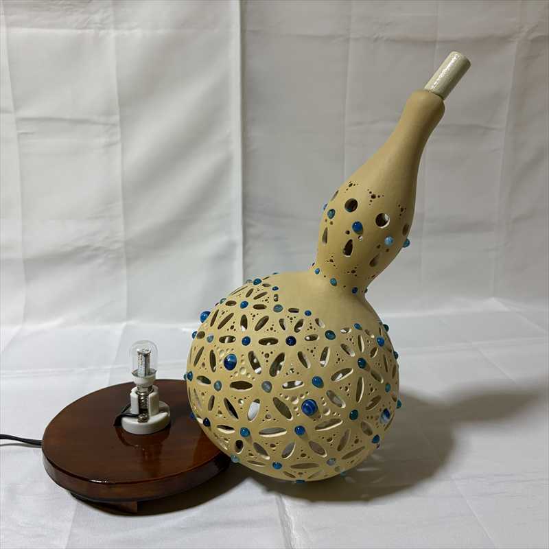 無農薬で自家栽培した、選りすぐりの美形ひょうたんを用いて制作した一点もののランプです。
