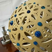 ひょうたん全体に、神聖幾何学「フラワーオブライフ」の模様を一つひとつ手作業で彫り込み、