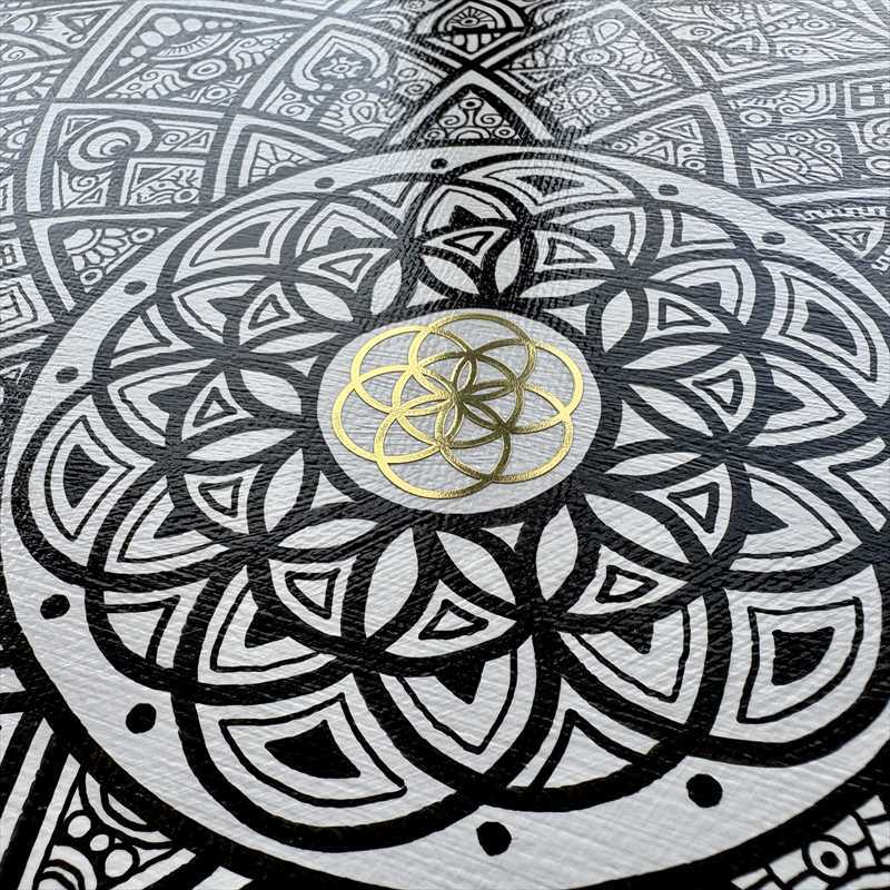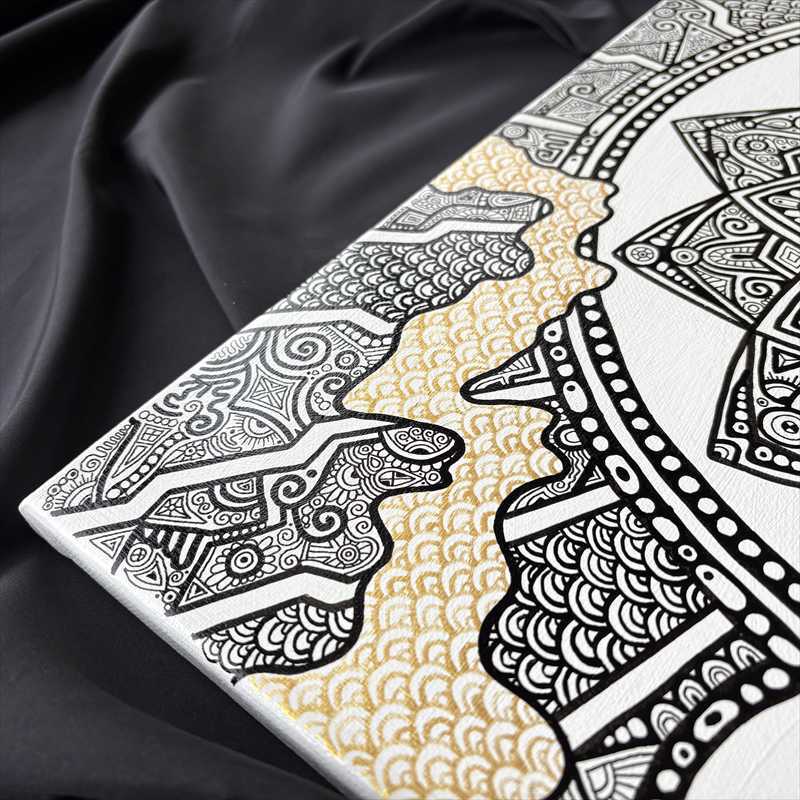 使用画材:キャンバス、顔料マーカー、アクリル絵の具、神聖幾何学メタルステッカー