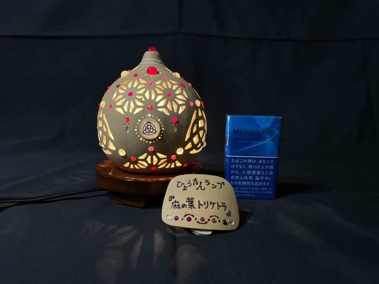 商品名:ミニひょうたんランプ「麻の葉トリケトラNo.5~ピンク瑪瑙」