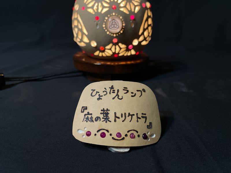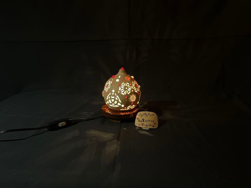 麻の葉模様との相性がよく不思議な雰囲気のランプになりました。