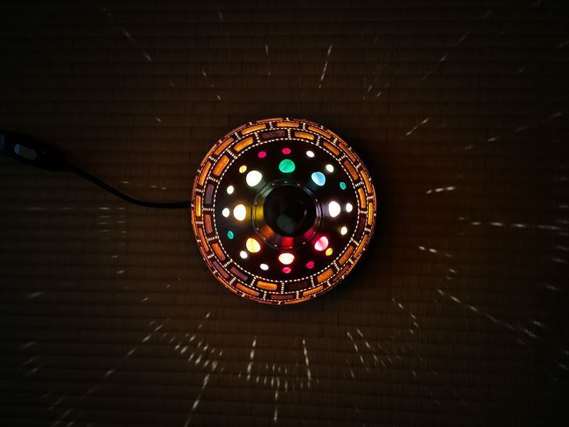 今回の瓢箪細工は光量は少ないですが、8色の天然石ビーズにより上部を華やかに彩りました。