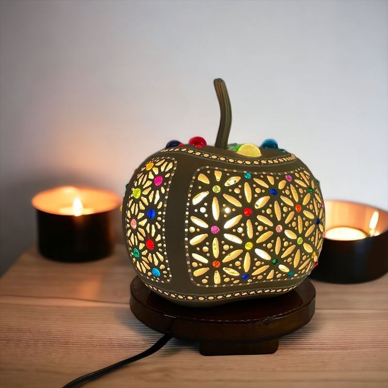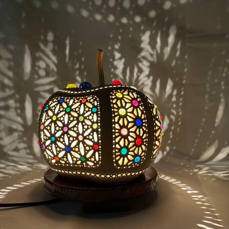 無農薬で自家栽培したひょうたんを使用したひょうたんランプ「ま☆ど(☆は六芒星)No.2」です。
