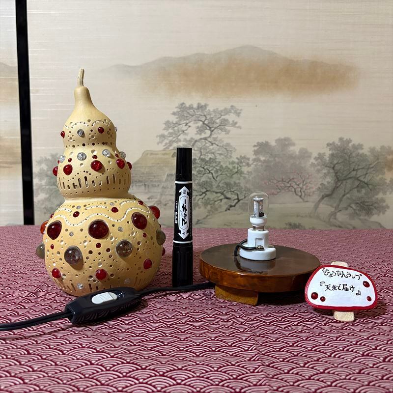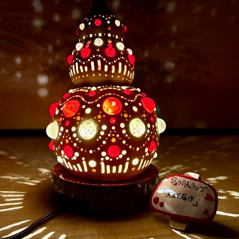 無農薬で自家栽培した小ぶりのひょうたんを使用した、当店オリジナルの一点物ランプです。