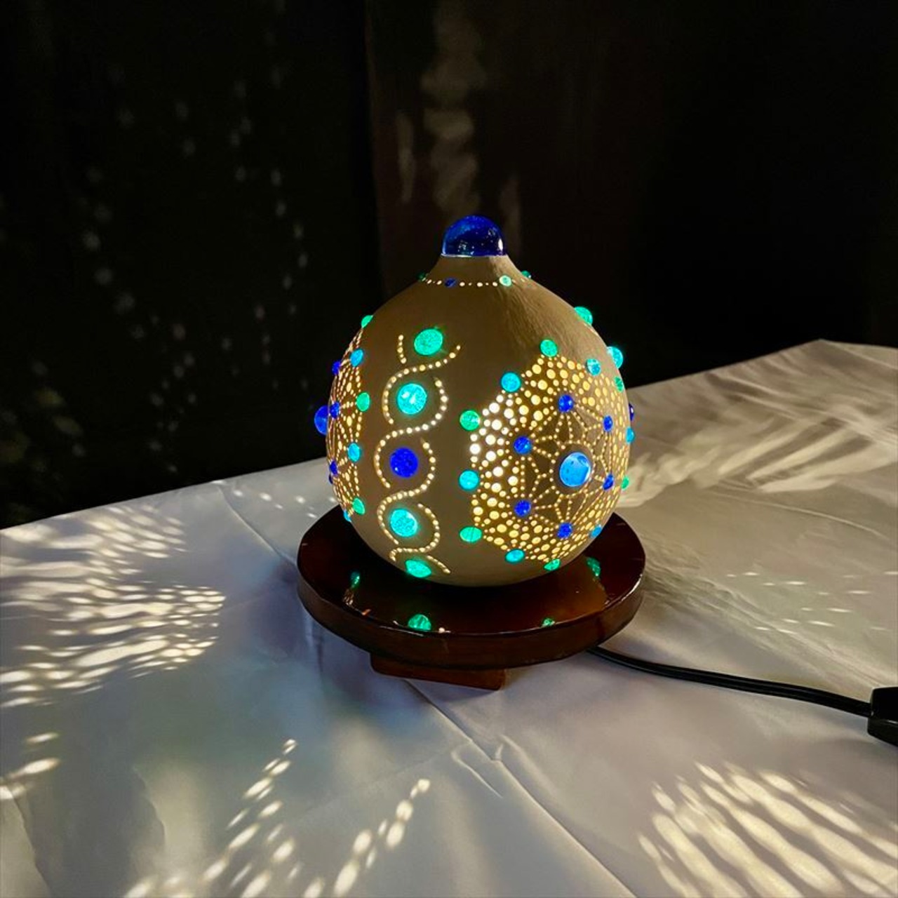 無農薬で自家栽培したひょうたんを使用したランプです。