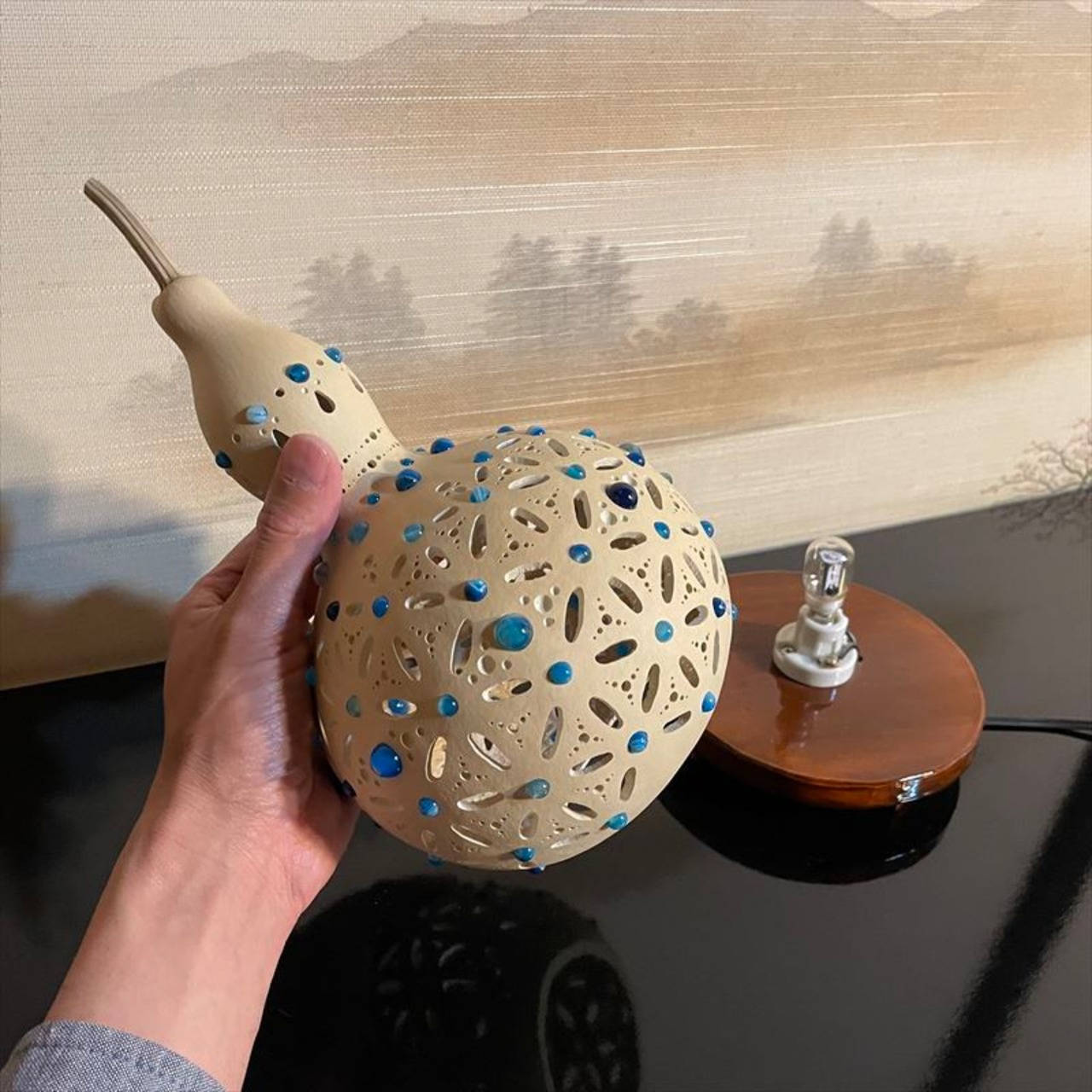 商品名:瓢箪ランプ「フラワーオブライフ~ブルーNo.5」