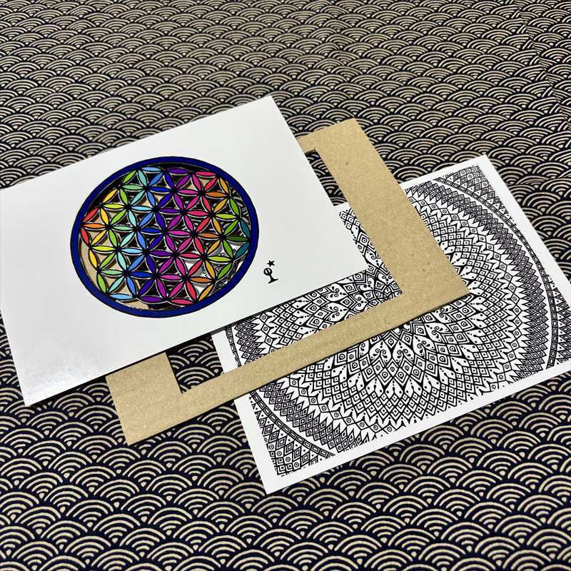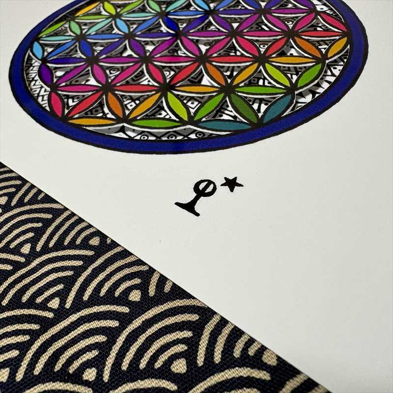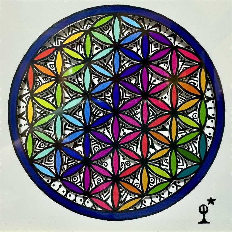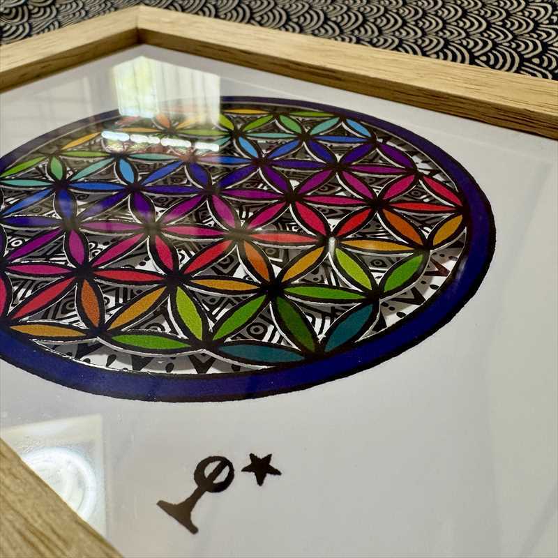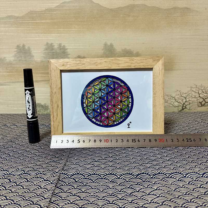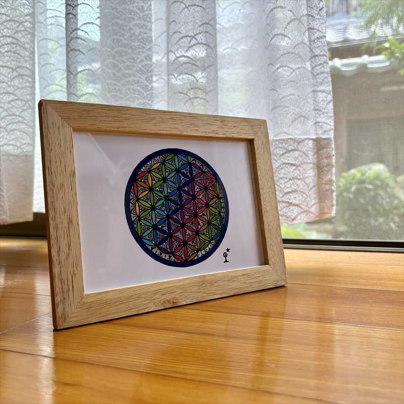 奥の自作ペンアートがフラワーオブライフの切り口から見えるようになっています。
